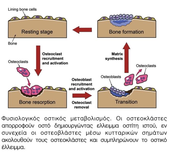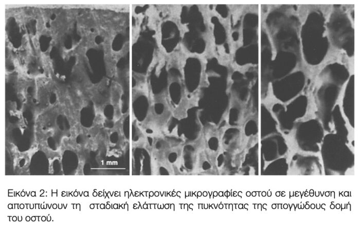 Η οστεοπόρωση είναι μια συστηματική πάθηση του μεταβολισμού των οστών, όπου διαταράσσεται η ισορροπία μεταξύ εναπόθεσης πρόωρου οστού και απορρόφησης ώριμου οστού (εικόνα 1). Η διαταραχή του μεταβολισμού των οστών μπορεί να έχει πολλές αιτίες (πχ εμμηνόπαυση, ενδοκρινολογικές διαταραχές, φαρμακευτική δράση, υποθρεψία) και η οστεοπόρωση είναι μία από τις πιθανές συνέπειες. Η πάθηση χαρακτηρίζεται από ελάττωση της οστικής πυκνότητας και επιδείνωση της μικροαρχιτεκτονικής του οστού (εικόνα 2). Κατά συνέπεια, ο ασθενής εμφανίζει μειωμένη μηχανική αντοχή των οστών. Η κλινική εκδήλωση αυτής της κατάστασης σπάνια εκφράζεται με πόνο, πρόκειται δηλαδή για πάθηση με σιωπηλή, αργή και ύπουλη εγκατάσταση. Η οστεοπόρωση εκδηλώνεται είτε με διαταραχές της μορφής των σπονδυλικών σωμάτων (αργή σφηνοειδής παραμόρφωση λόγω αυξημένου φορτίου και αφθονίας σπογγώδους οστού που δημιουργεί επίκτητη κύφωση), είτε με κατάγματα χαμηλής ή πολύ χαμηλής βίας (σπονδυλικό κάταγμα μετά από απλή άρση βάρους, κάταγμα ισχίου ύστερα από πτώση εξ ιδίου ύψους εντός της οικίας). Η κλινική σημασία της οστεοπόρωσης εδράζεται στον αυξημένο κίνδυνο καταγμάτων χαμηλής βίας και τις αρνητικές συνέπειες τους, τόσο στην ποιότητα ζωής ενός ασθενή όσο και στους πόρους ενός συστήματος υγείας.